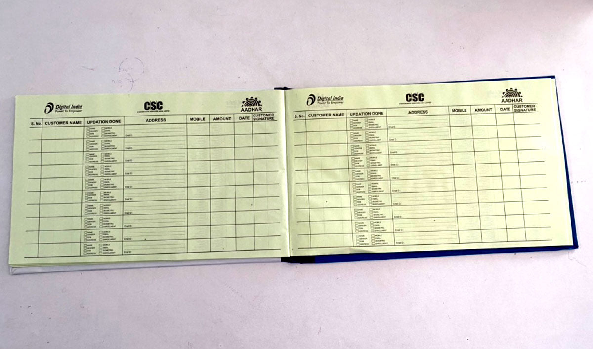 CSC Uidai Aadhaar Seva Kendra (UCL) Enrollment & Update Register